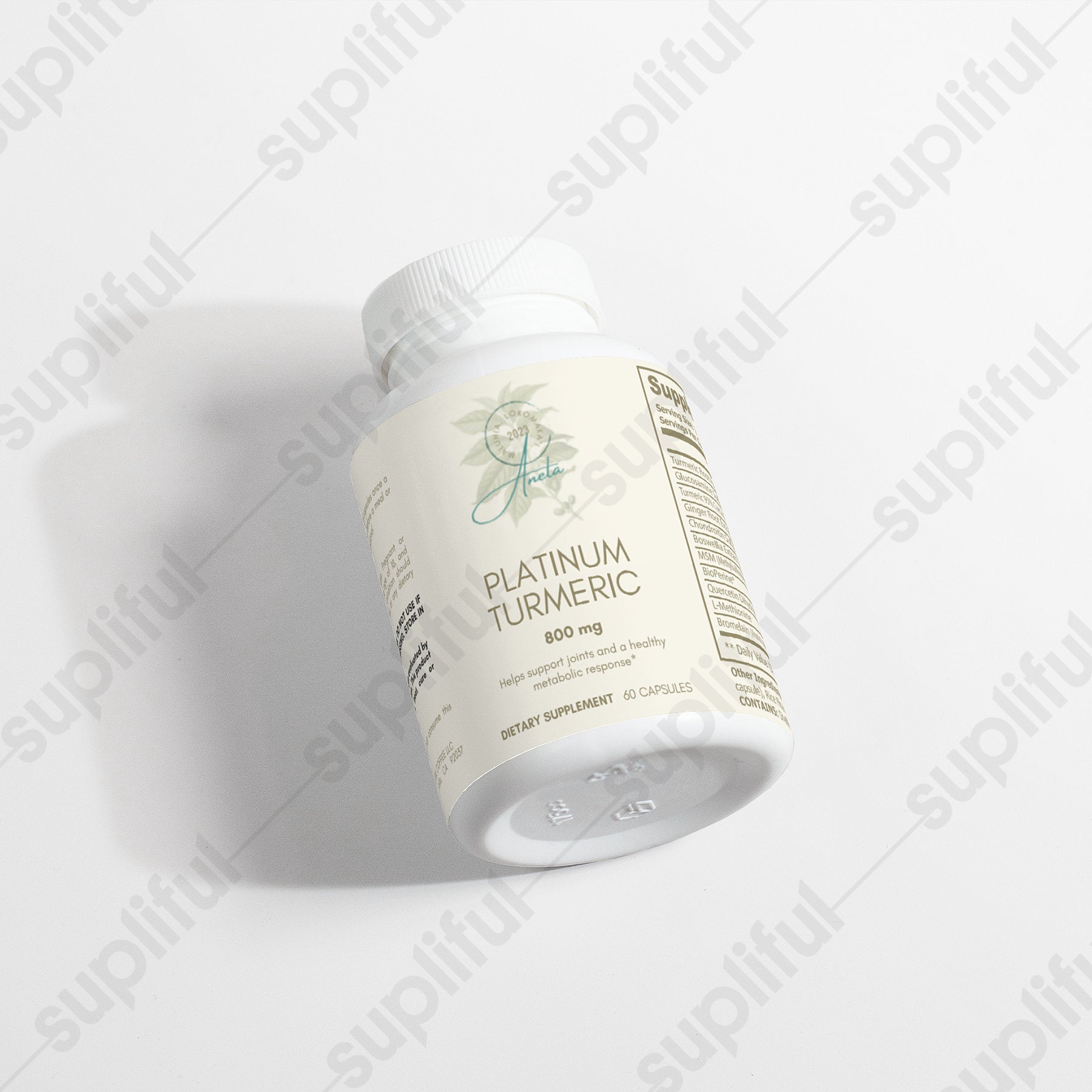 Ingredients: Turmeric Root Powder, Glucosamine Sulfate 2KCI, Turmeric 95% Curcuminoids, Ginger Root Extract, Chondroitin Sulfate, Boswellia Extract, MSM, BioPerine®, Quercetin Dihydrate, L-Methionine, Bromelain, Cellulose (vegetable capsule), Rice Flour.